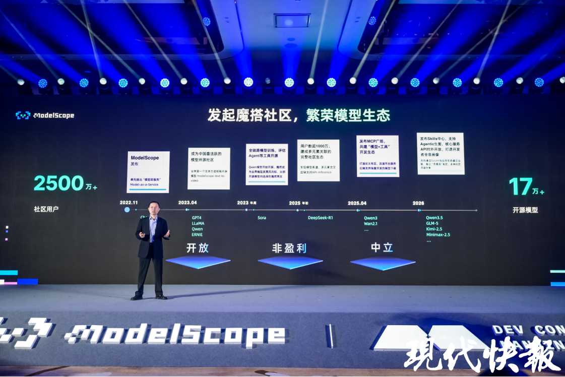 大會(huì)期間,魔搭社區(qū)正式推出Skills中心,并全面開(kāi)放核心OpenAPI,讓面向Agentic智能的生態(tài)能夠被更好地集成。同時(shí),魔搭社區(qū)發(fā)布了首份AI開(kāi)源人才報(bào)告,上線(xiàn)了AI開(kāi)源人才全息畫(huà)像。此外,魔搭社區(qū)開(kāi)源發(fā)展委員會(huì)正式成立,將推動(dòng)落地具有全球影響力的開(kāi)源技術(shù)標(biāo)準(zhǔn),加速建設(shè)中立、專(zhuān)業(yè)、可持續(xù)的AI開(kāi)源生態(tài)。