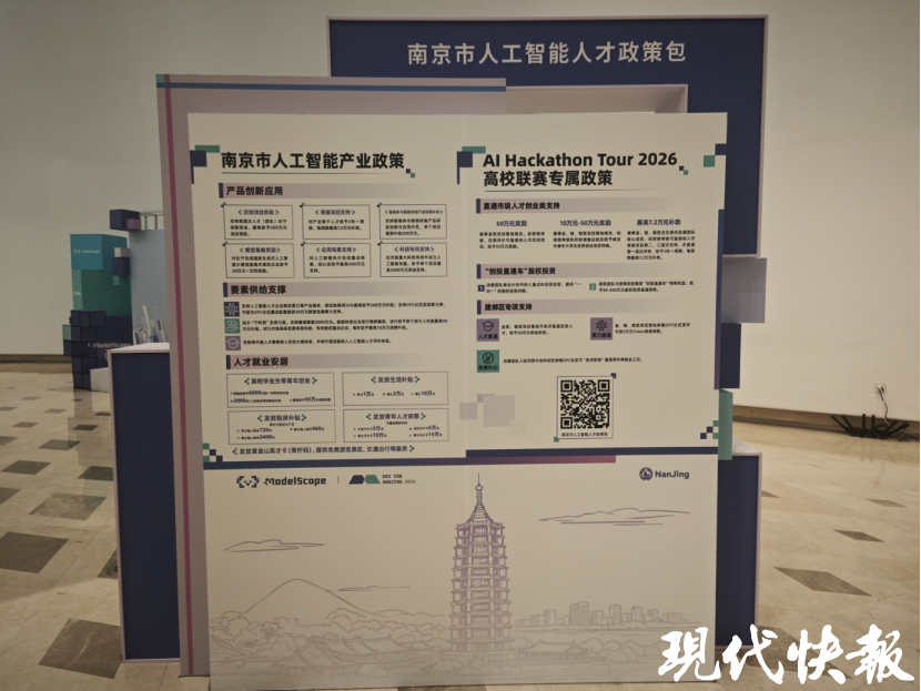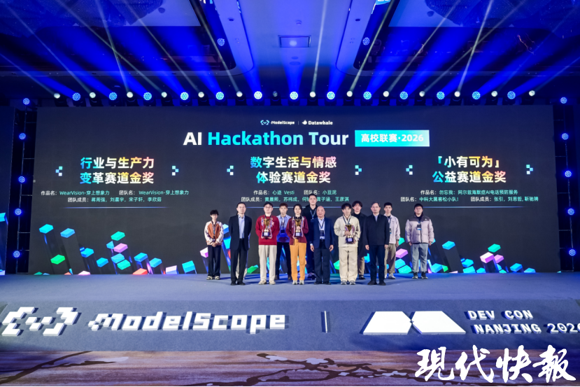 賽事的發(fā)起方之一魔搭社區(qū)是中國(guó)最大模型開(kāi)源社區(qū),本次賽事中開(kāi)發(fā)者們以代碼為橋梁,突破技術(shù)邊界,在智能終端、具身智能、人形機(jī)器人等前沿領(lǐng)域探索出創(chuàng)新方案,為江蘇乃至全國(guó)的人工智能產(chǎn)業(yè)發(fā)展注入新動(dòng)能。會(huì)上,AlHackathon Tour 2026聯(lián)賽獲獎(jiǎng)隊(duì)伍開(kāi)啟“All in AI:智匯金陵,點(diǎn)亮未來(lái)”。南京市AI系列政策發(fā)布的同時(shí),南京市發(fā)布一系列AI人才激勵(lì)政策和項(xiàng)目獎(jiǎng)勵(lì)政策。